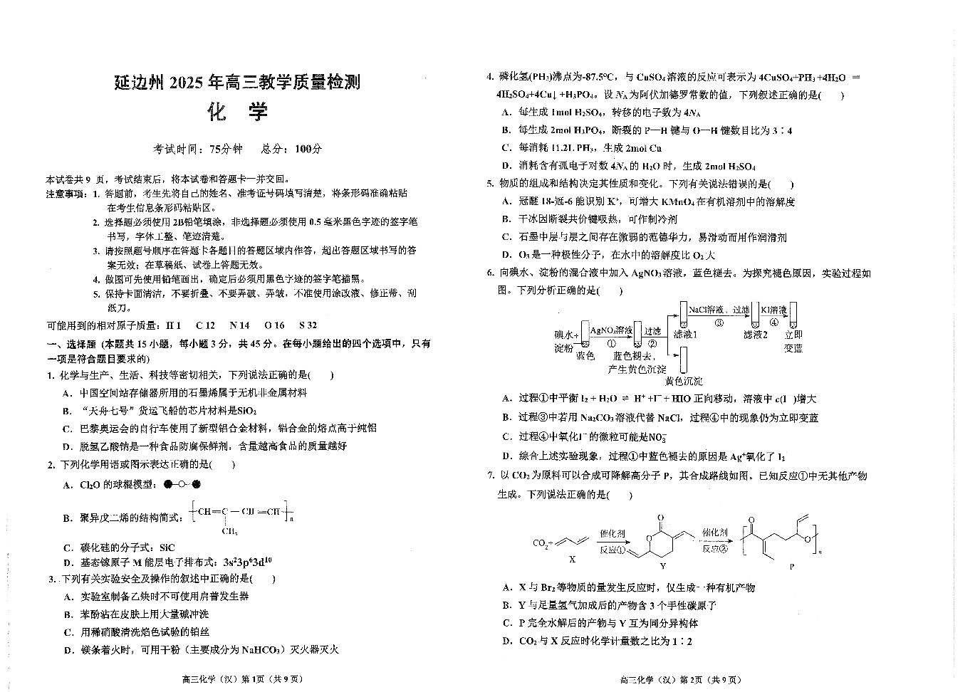 延边州2025年高三教学质量检测 化学.pdf