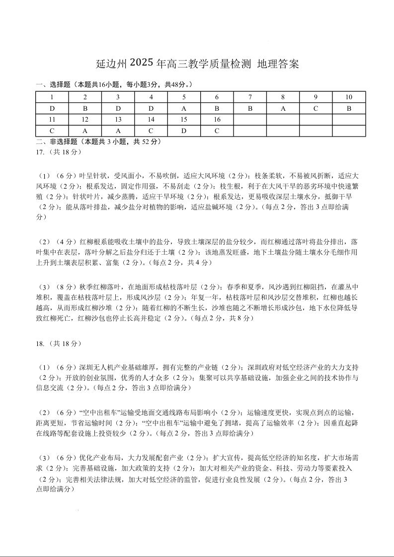 延边州2025年高三教学质量检测 地理答案.docx