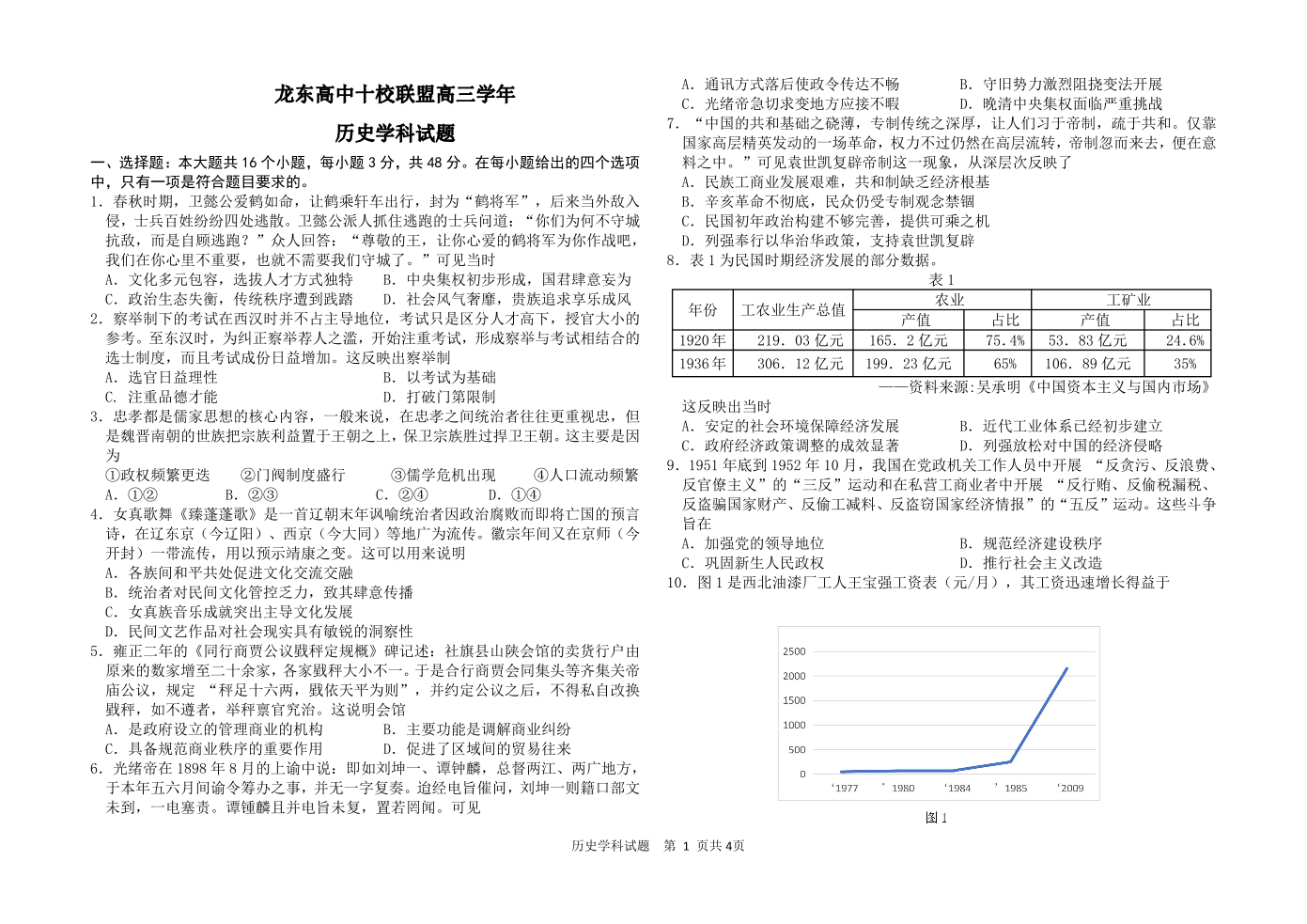 龙东高中十校联盟2025届高三学年适应性考试 历史.pdf