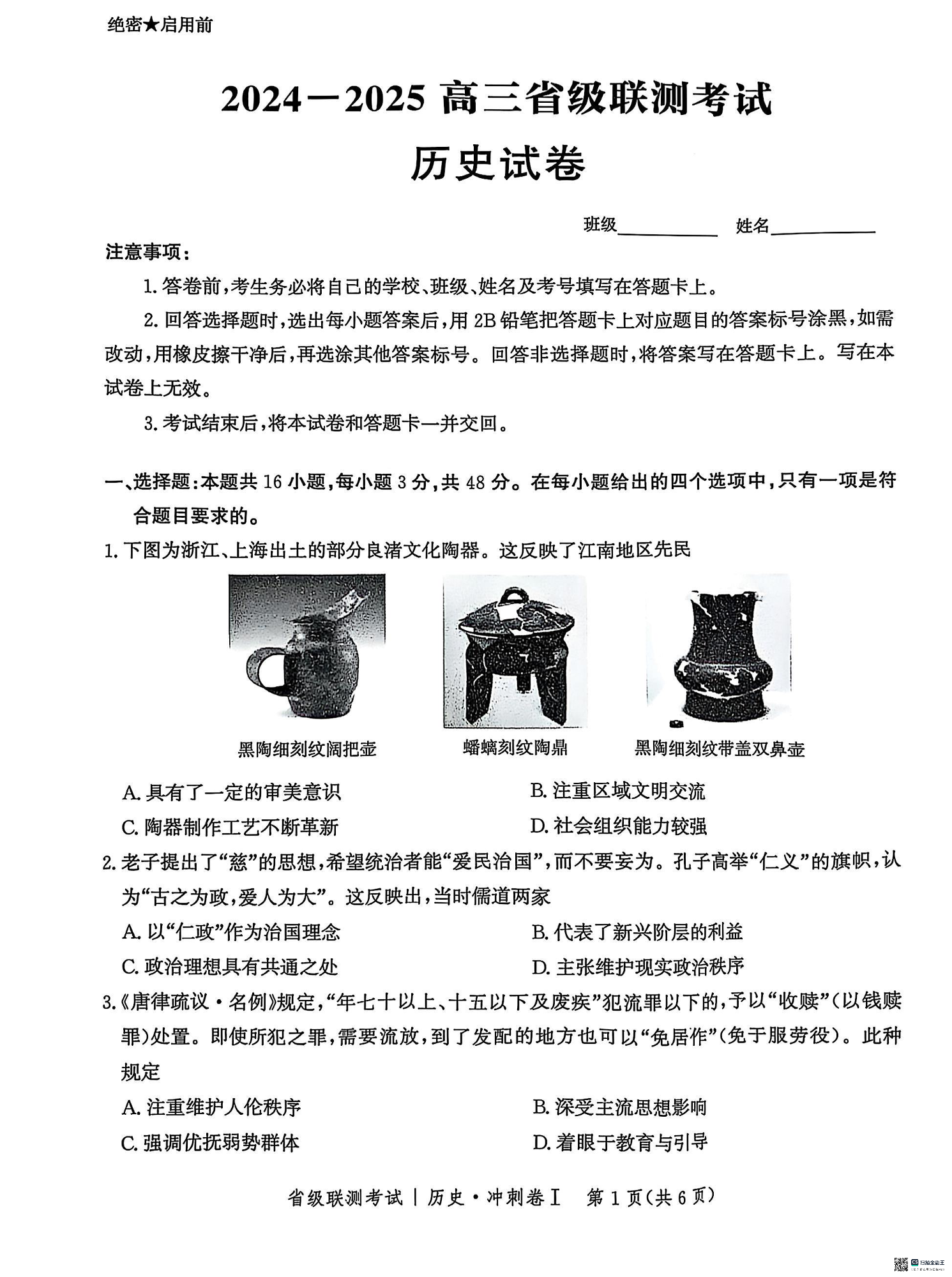 河北省2024-2025学年高三下学期省级联测考试 历史(含答案).pdf