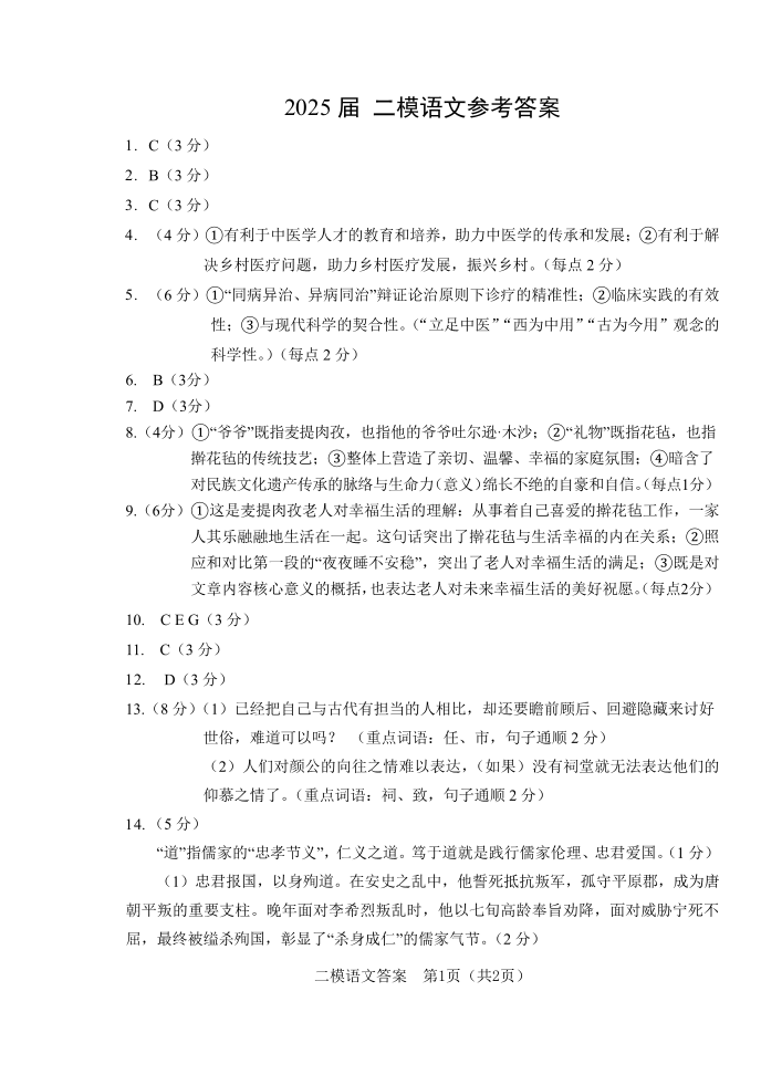 长春市2025届高三质量监测(二)语文答案.pdf