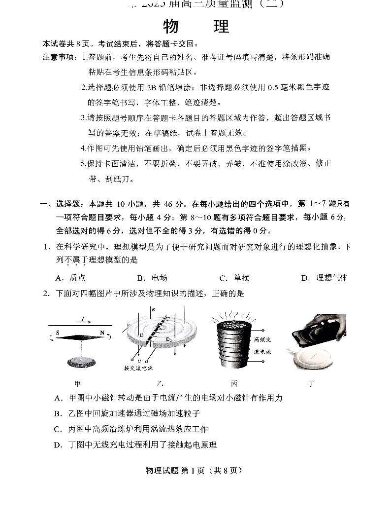 长春市2025届高三质量监测(二)物理.pdf