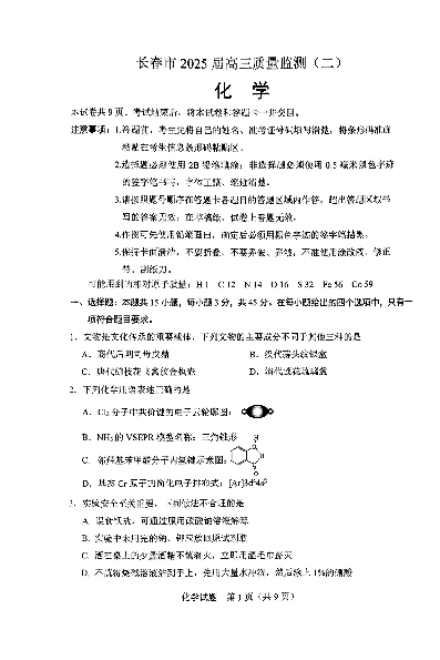 长春市2025届高三质量监测(二)化学.pdf