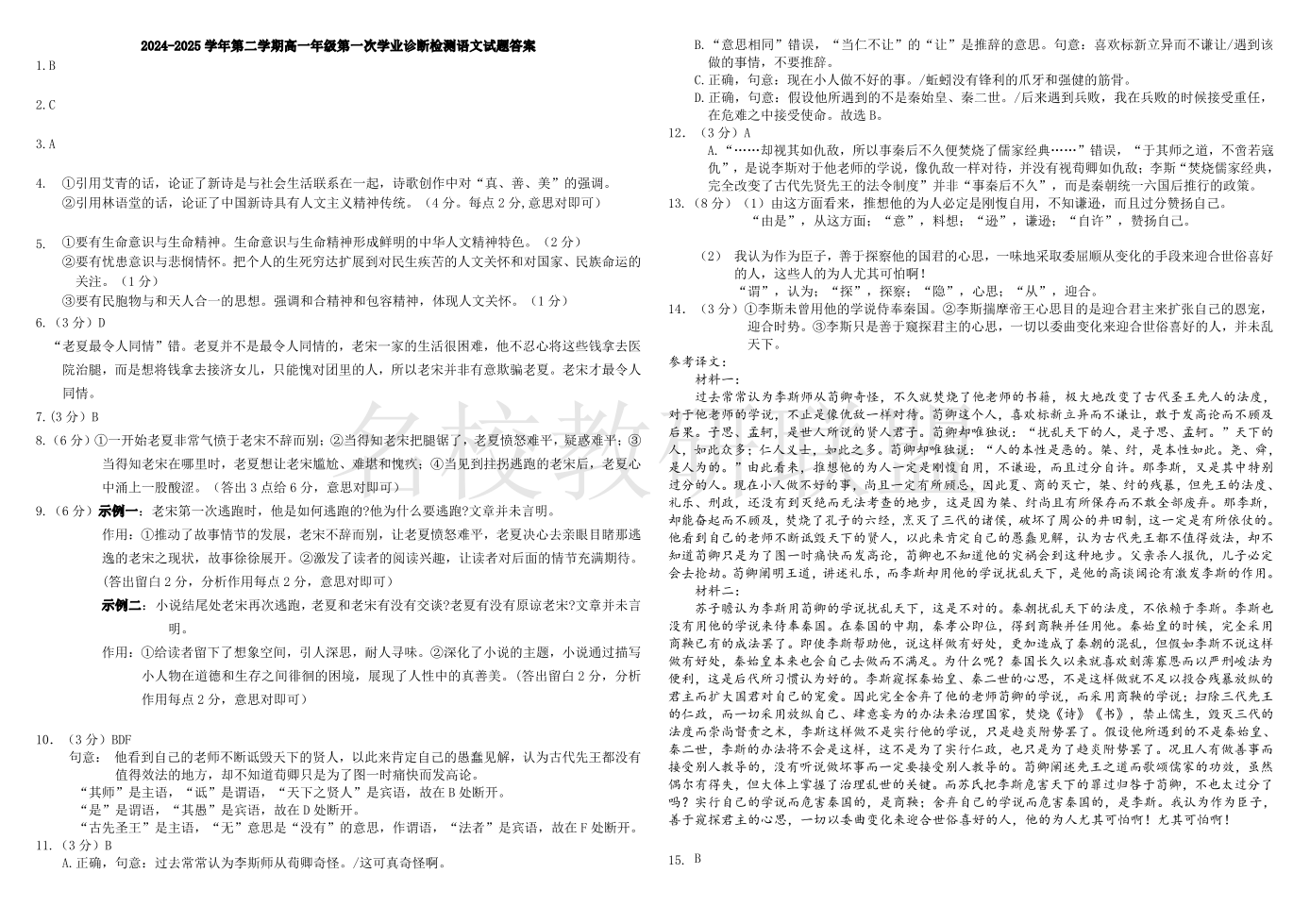 巴彦淖尔市第一中学2024-2025学年高一下学期第一次学业诊断 语文答案.pdf