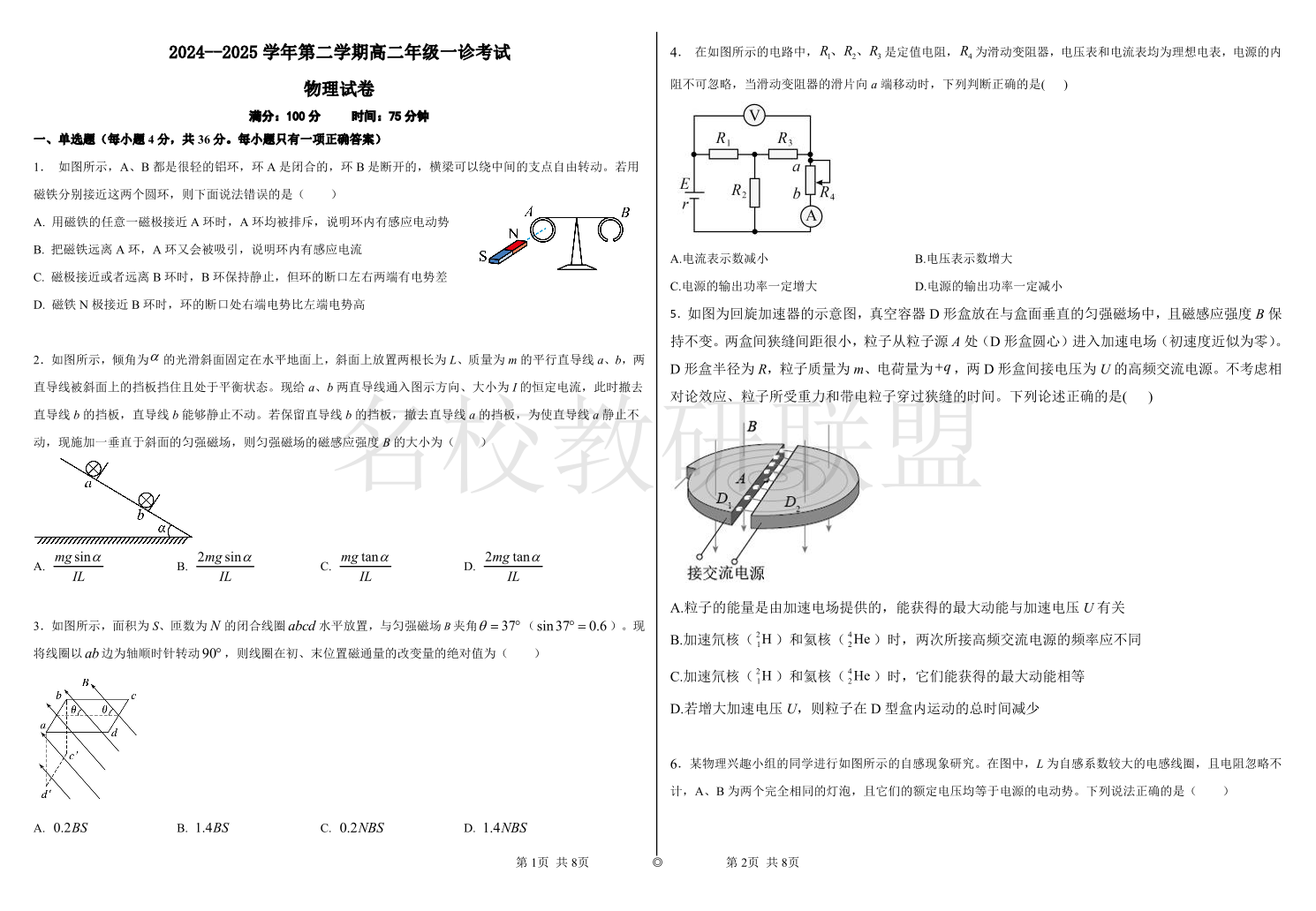 巴彦淖尔市第一中学2024-2025学年高二下学期第一次学业诊断 物理.pdf