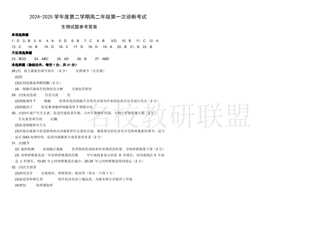 巴彦淖尔市第一中学2024-2025学年高二下学期第一次学业诊断 生物答案.pdf
