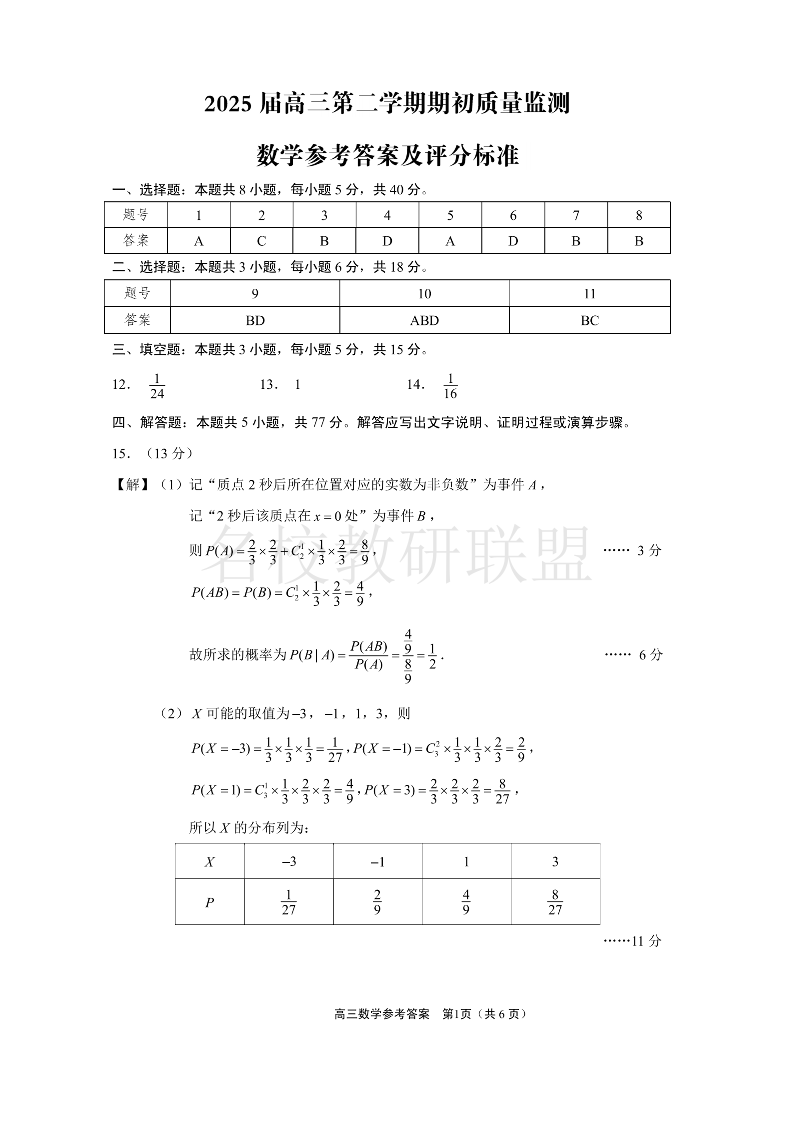 江苏省新高考基地学校2025届高三下学期期初质量监测 数学答案.pdf