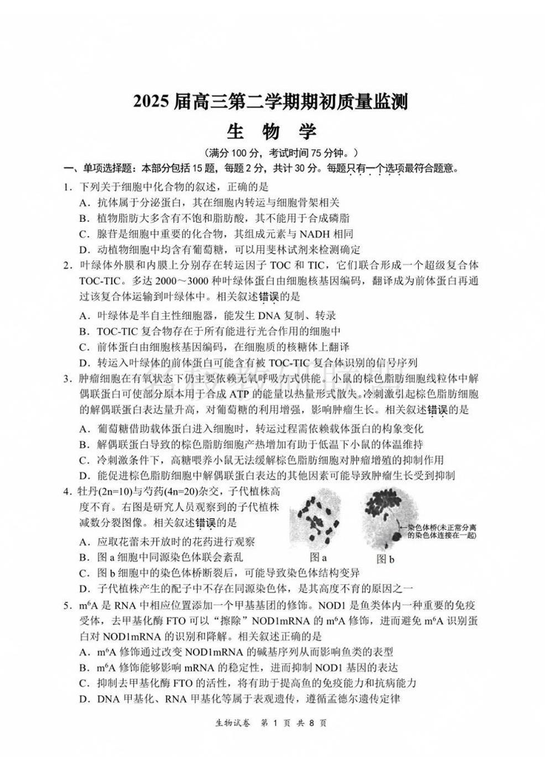 江苏省新高考基地学校2025届高三下学期期初质量监测 生物.pdf