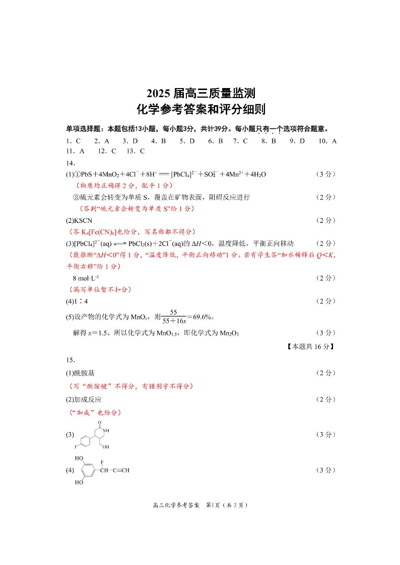 江苏省新高考基地学校2025届高三下学期期初质量监测 化学答案.pdf