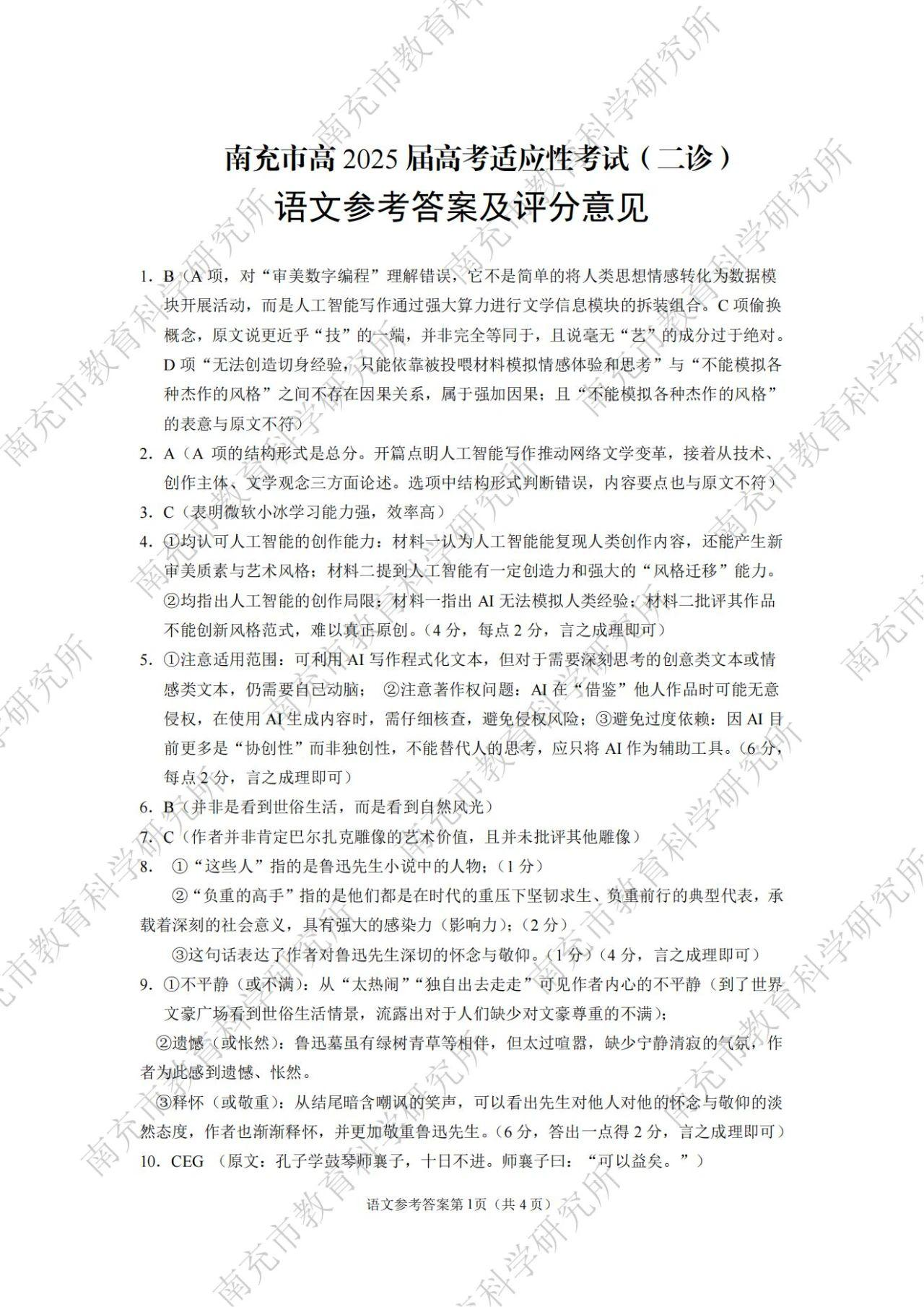 四川省南充市高2025届高考适应性考试(二诊)语文答案.pdf
