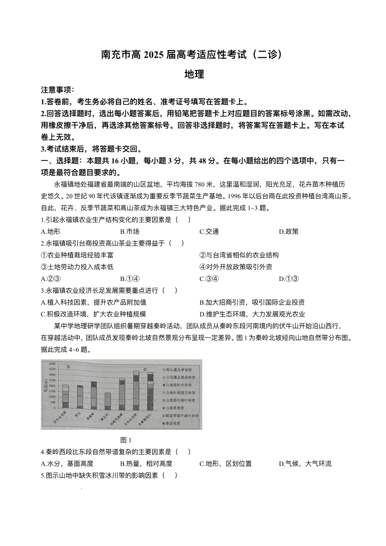 四川省南充市高2025届高考适应性考试(二诊)地理.pdf