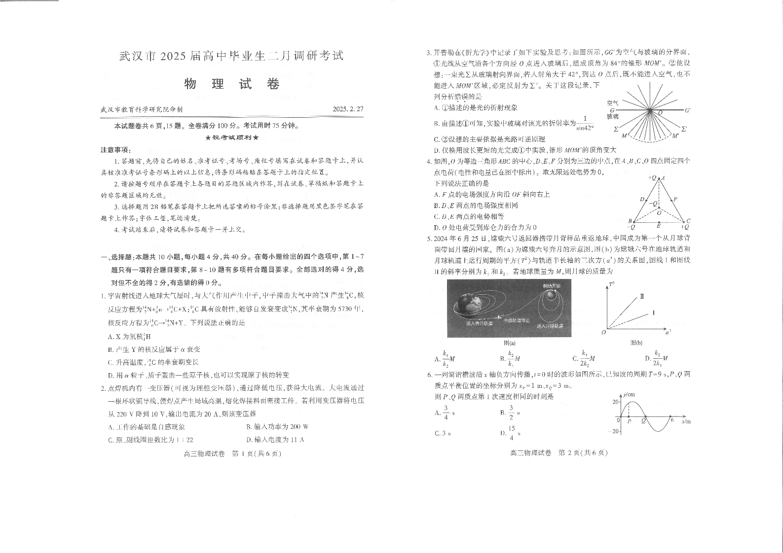 武汉市2025届高中毕业生二月调研考试 物理.pdf