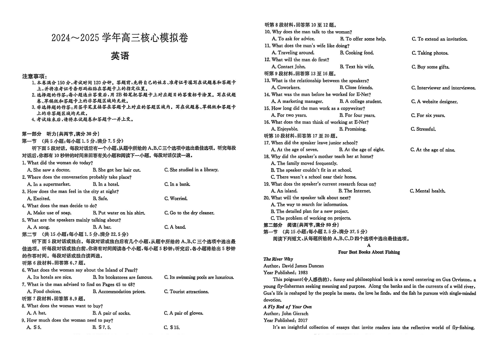 湖北省黄冈市2025届高三下学期核心预测卷 英语.pdf