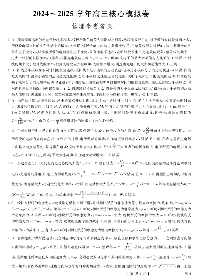 湖北省黄冈市2025届高三下学期核心预测卷 物理答案.pdf