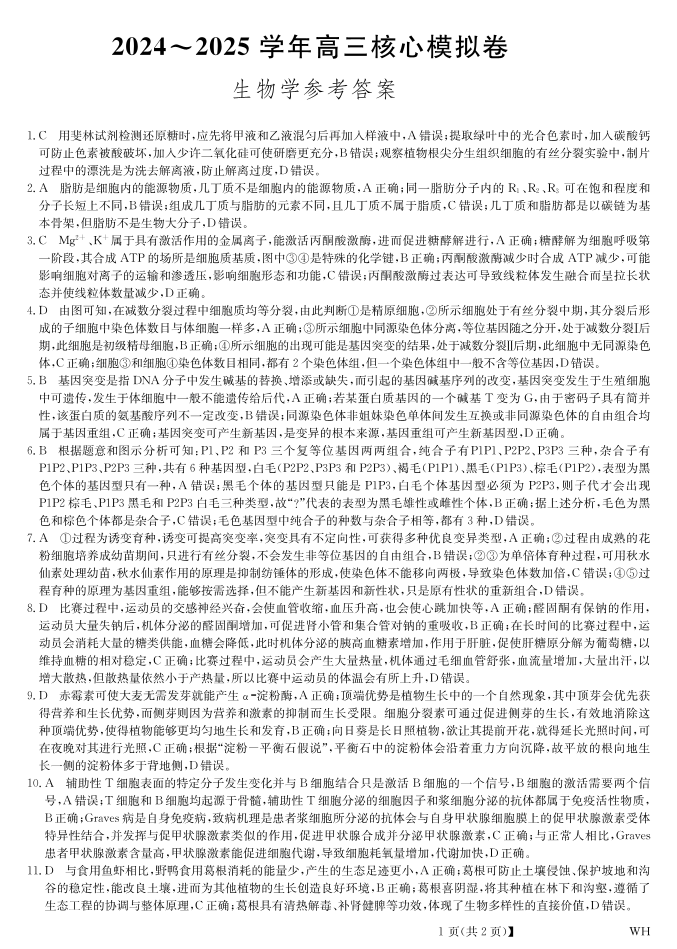 湖北省黄冈市2025届高三下学期核心预测卷 生物答案.pdf