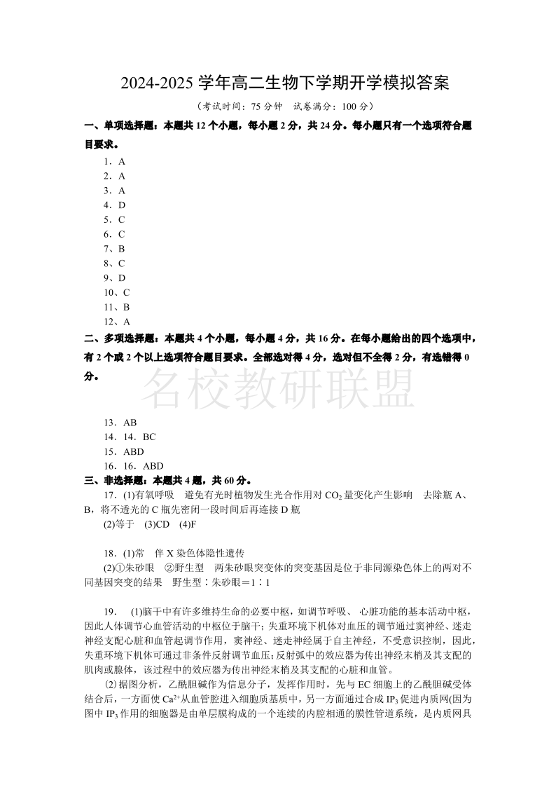 湖南省邵阳县二中2025年上学期生物入学考试试卷答案.pdf