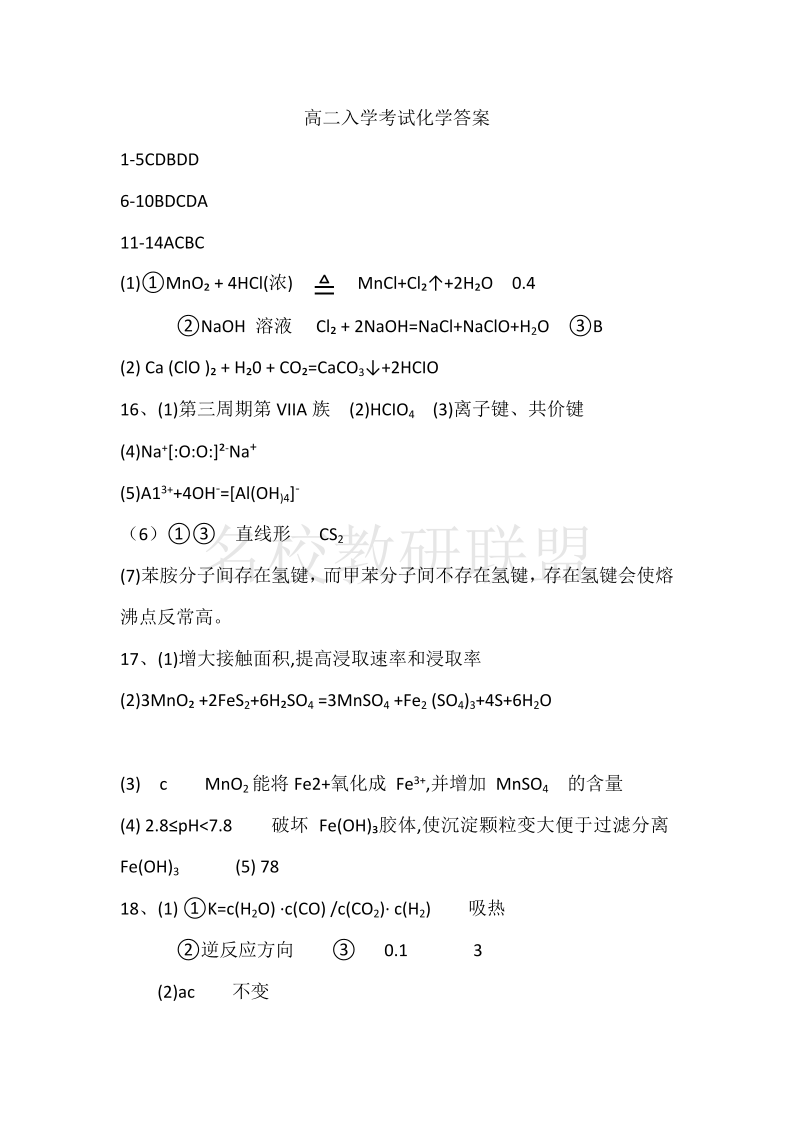 湖南省邵阳县二中2025年上学期化学入学考试试卷答案.pdf