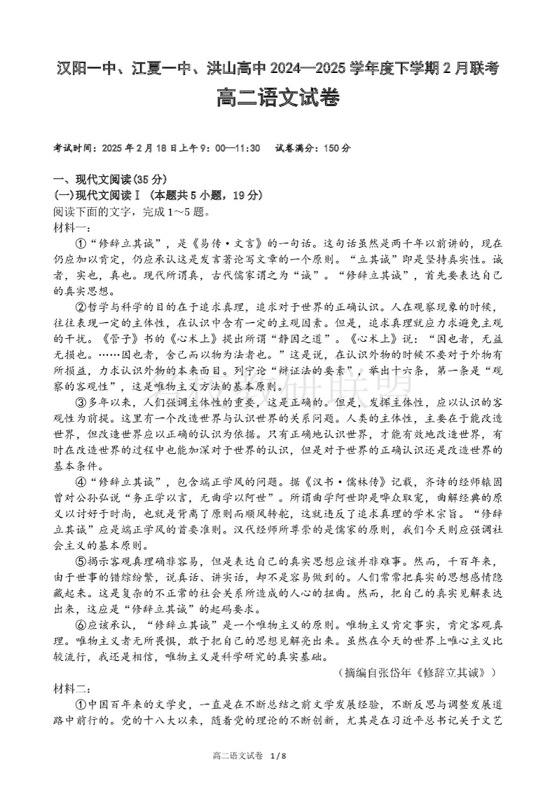 汉阳一中、江夏一中、洪山高中 高二语文.pdf