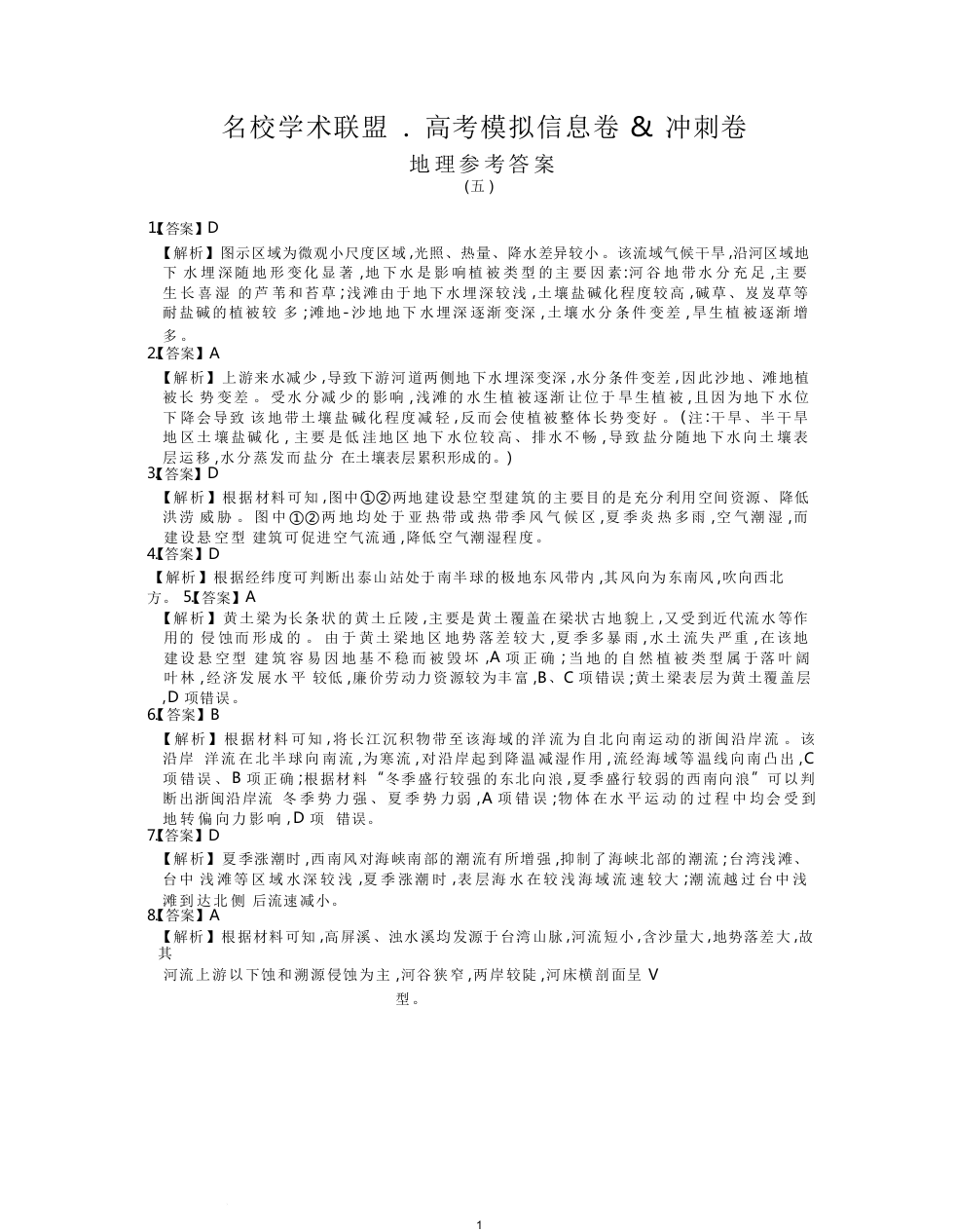河南省名校学术联盟2025届高三下学期模拟冲刺(五)地理答案.docx