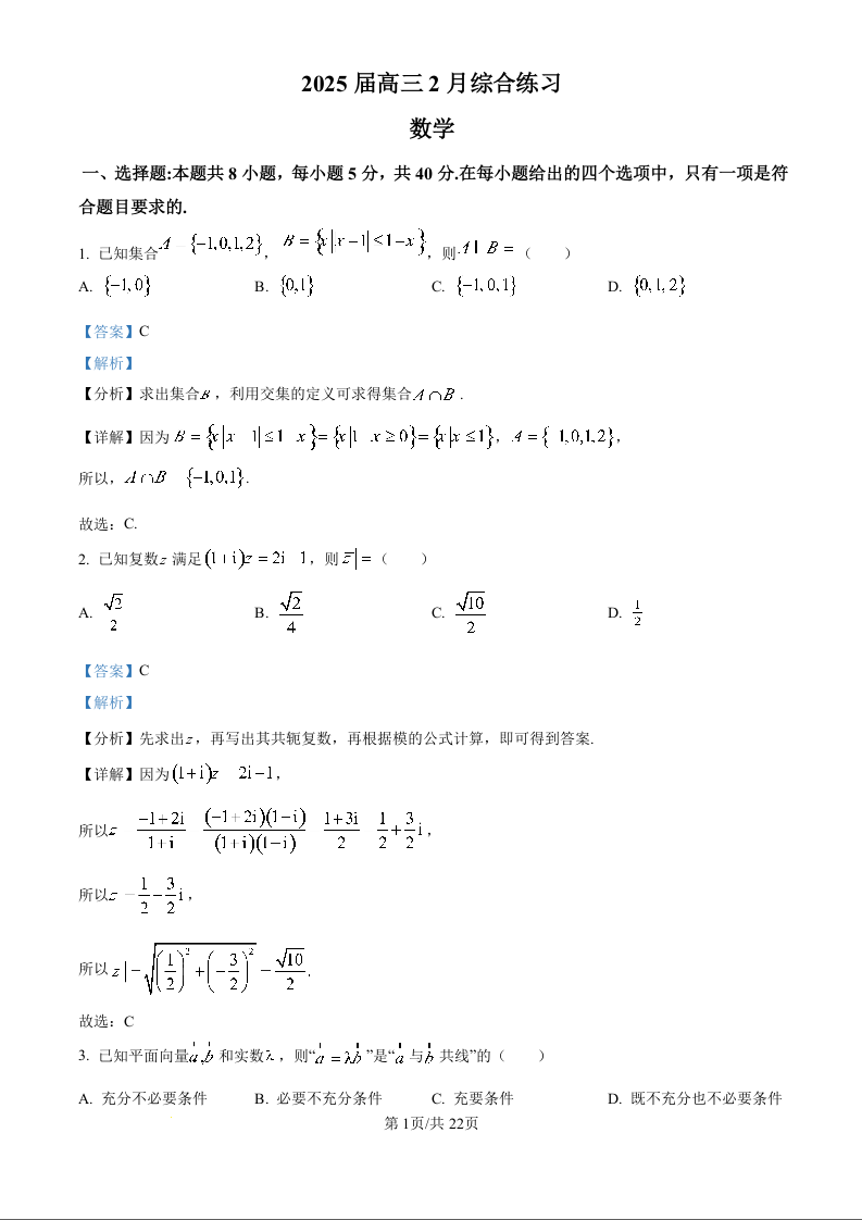 江苏省锡山高级中学2024-2025学年高三下学期2月综合练习 数学答案.docx