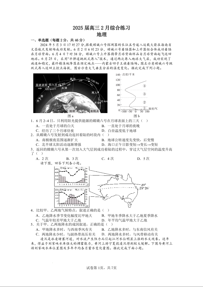江苏省锡山高级中学2024-2025学年高三下学期2月综合练习 地理.docx