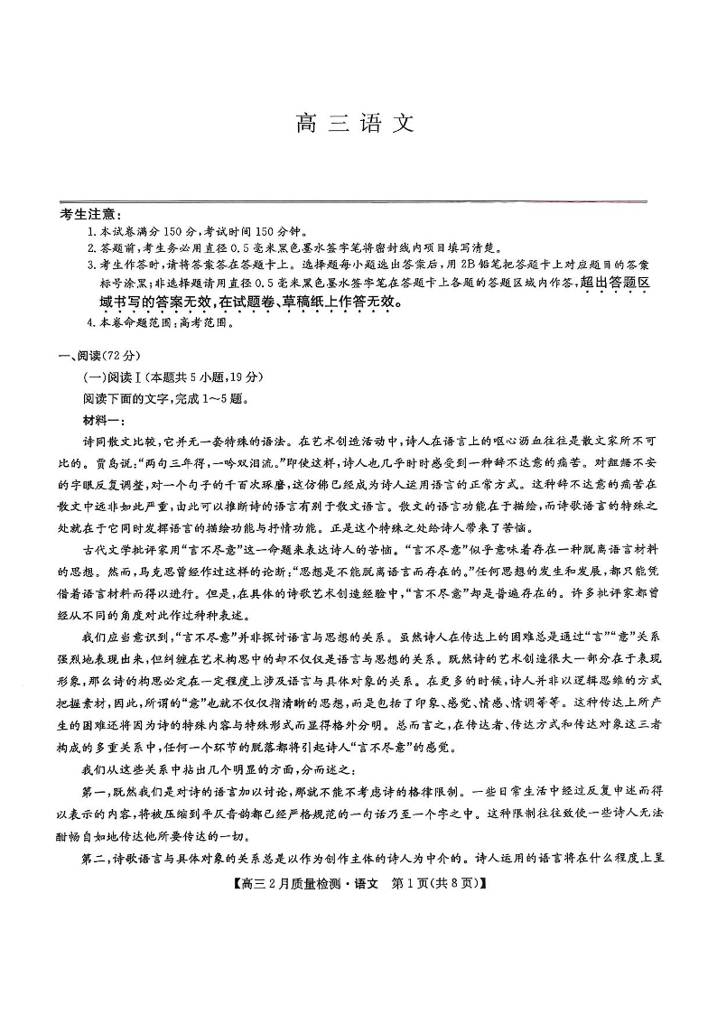 九师联盟2025届高三2月质量检测 语文(含答案).pdf