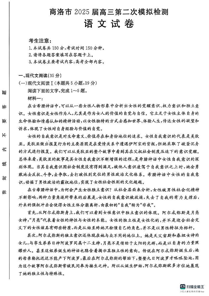 陕西省商洛市2025届高三第二次模拟考试 语文.pdf