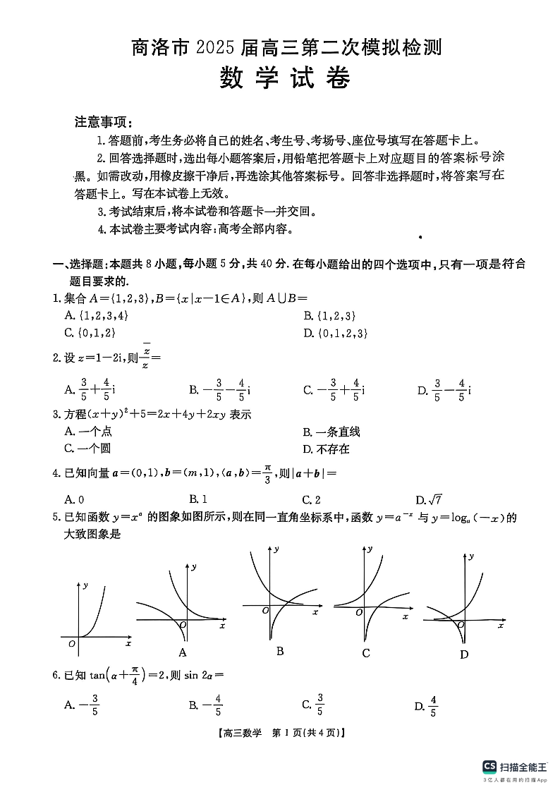 陕西省商洛市2025届高三第二次模拟考试 数学.pdf