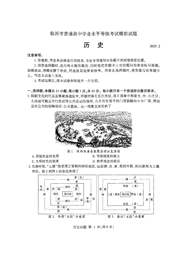 山东省临沂市2025年普通高等学校招生全国统一考试(模拟)历史.pdf