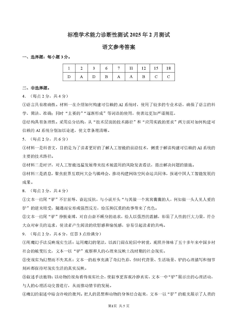 2025年2月诊断性测试 语文答案.pdf