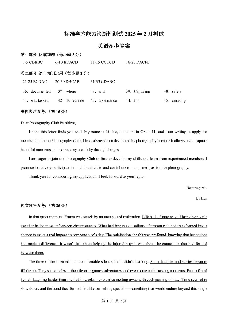 2025年2月诊断性测试 英语答案.pdf
