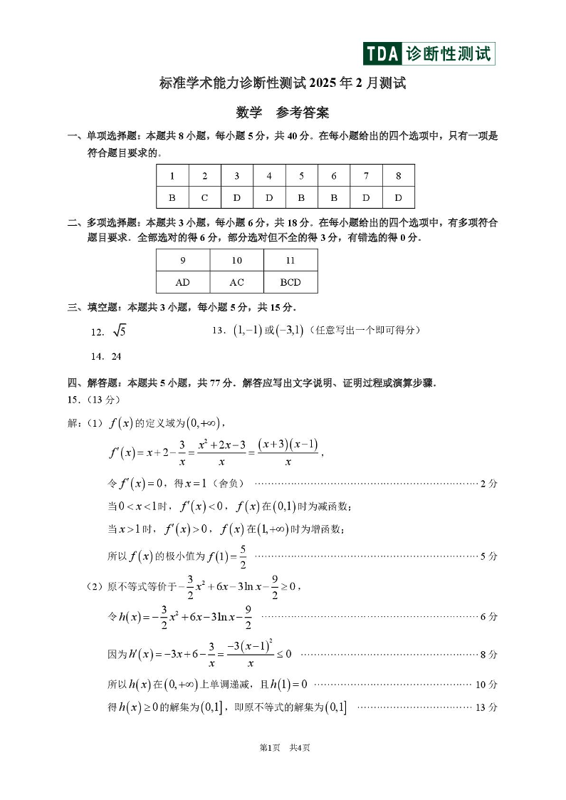 2025年2月诊断性测试 数学答案.pdf