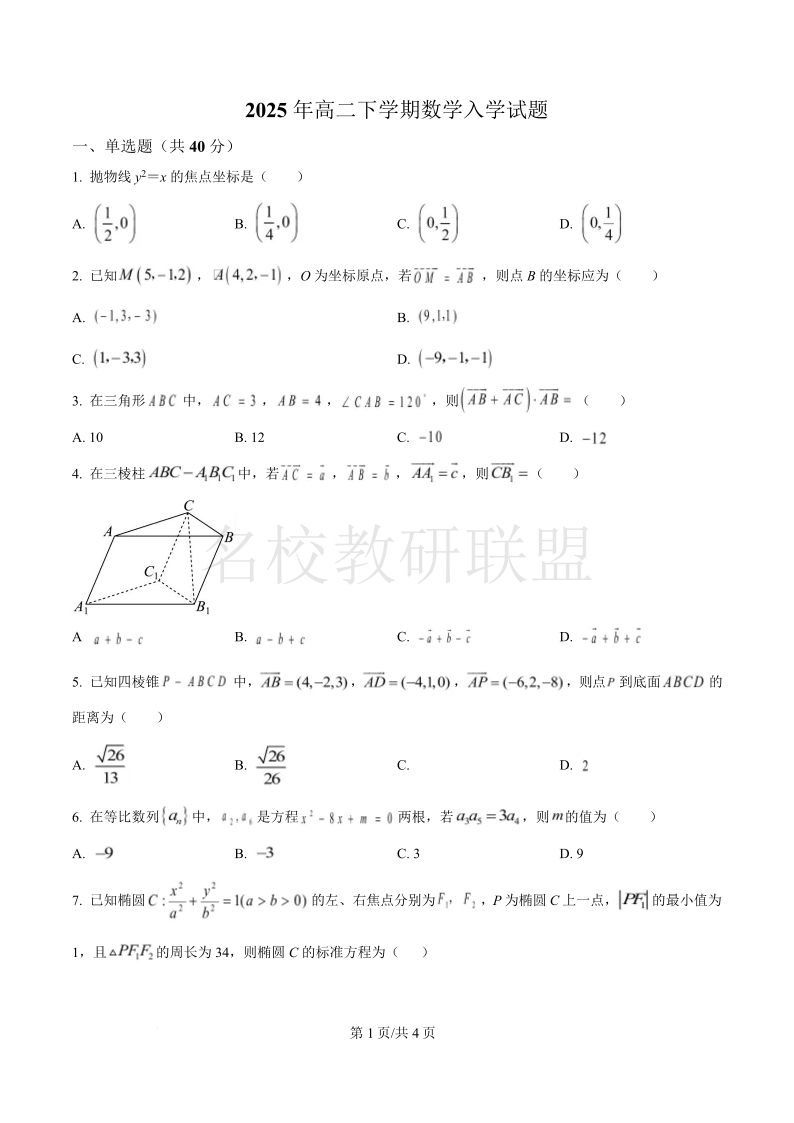 湖南省岳阳县第一中学2025年高二下学期开学考试 数学(含答案).pdf