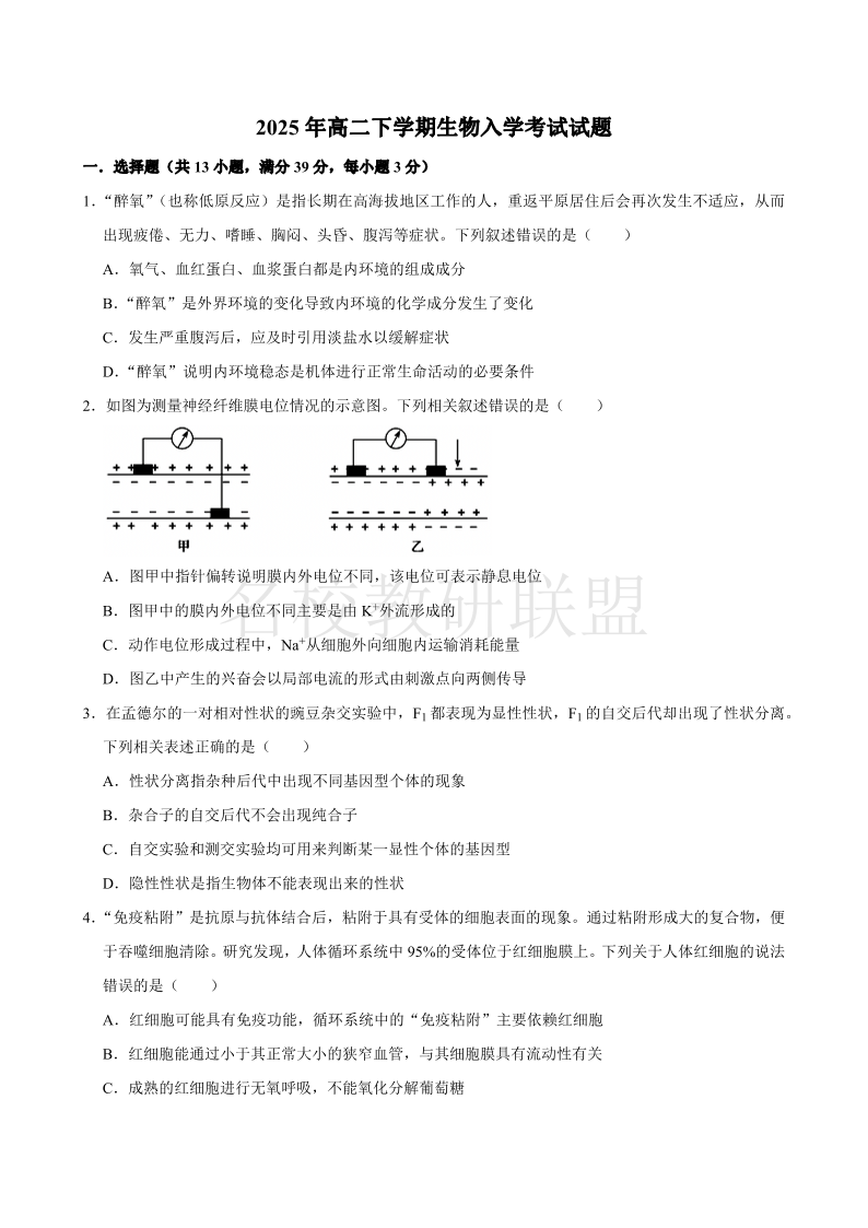 湖南省岳阳县第一中学2025年高二下学期开学考试 生物(含答案).pdf