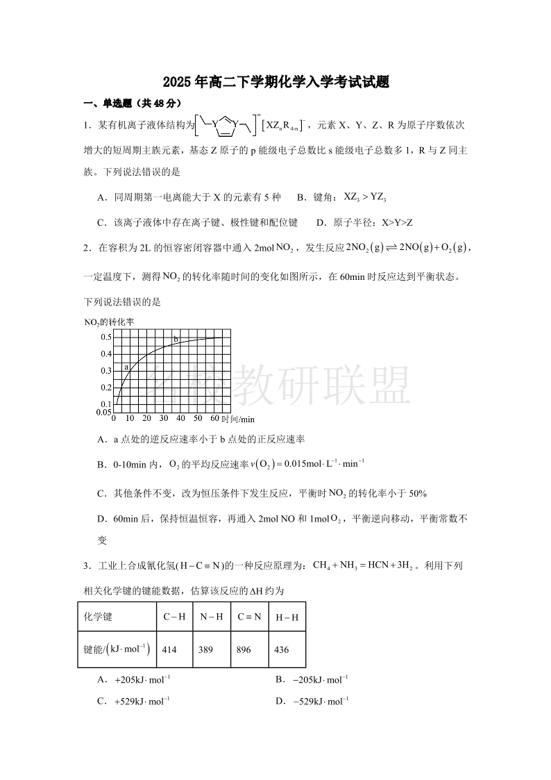 湖南省岳阳县第一中学2025年高二下学期开学考试 化学(含答案).pdf