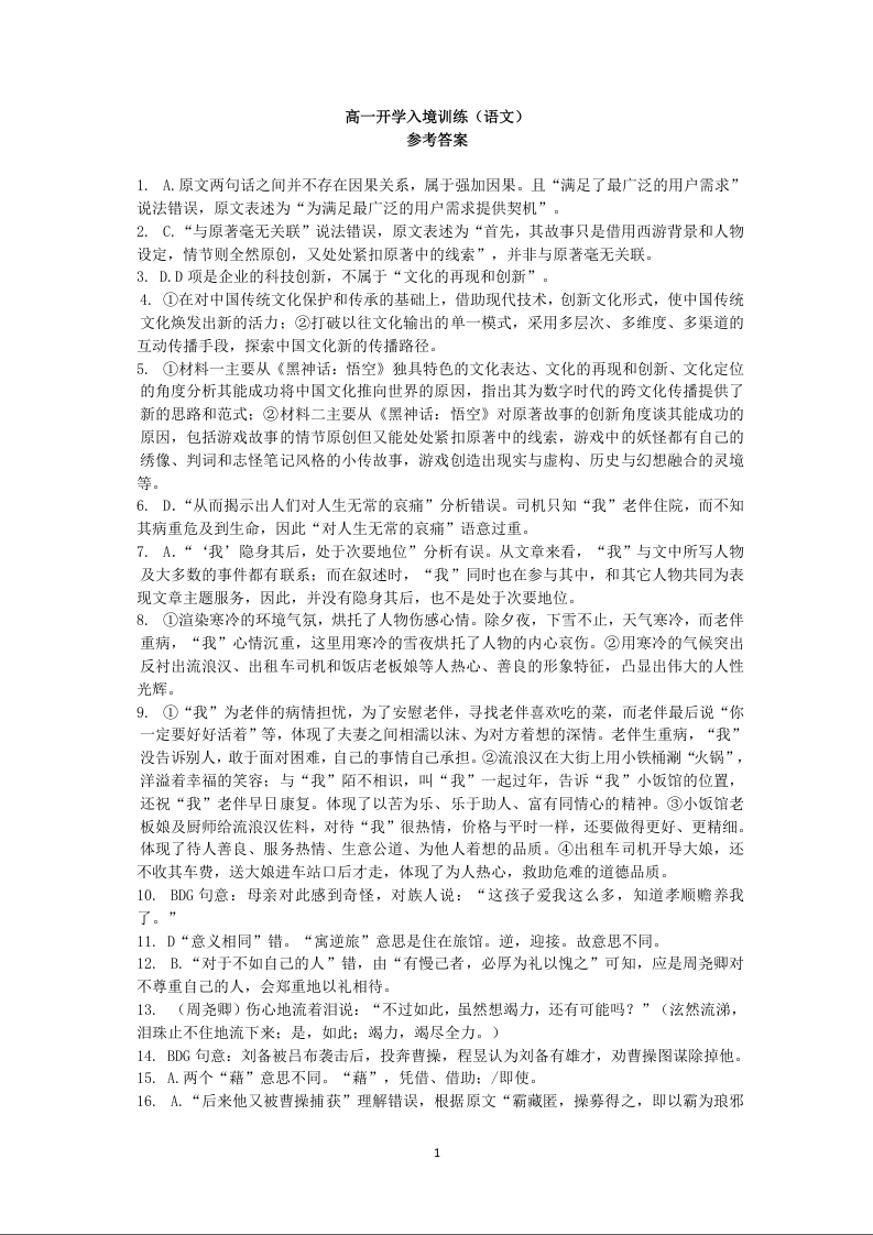 广东实验中学2024-2025学年高一下学期开学考试 语文答案.docx