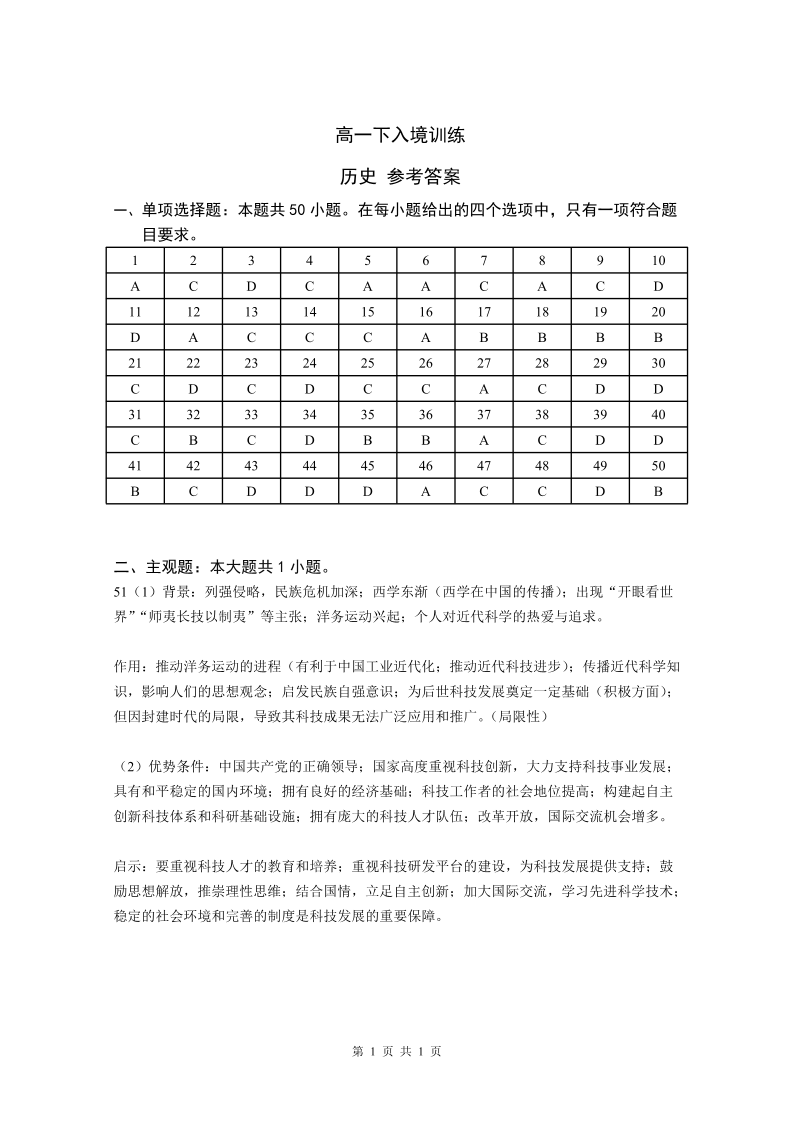 广东实验中学2024-2025学年高一下学期开学考试 历史答案.pdf