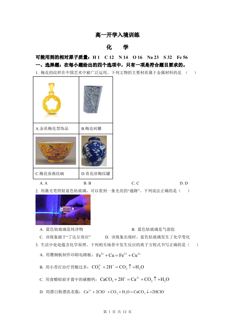 广东实验中学2024-2025学年高一下学期开学考试 化学.pdf