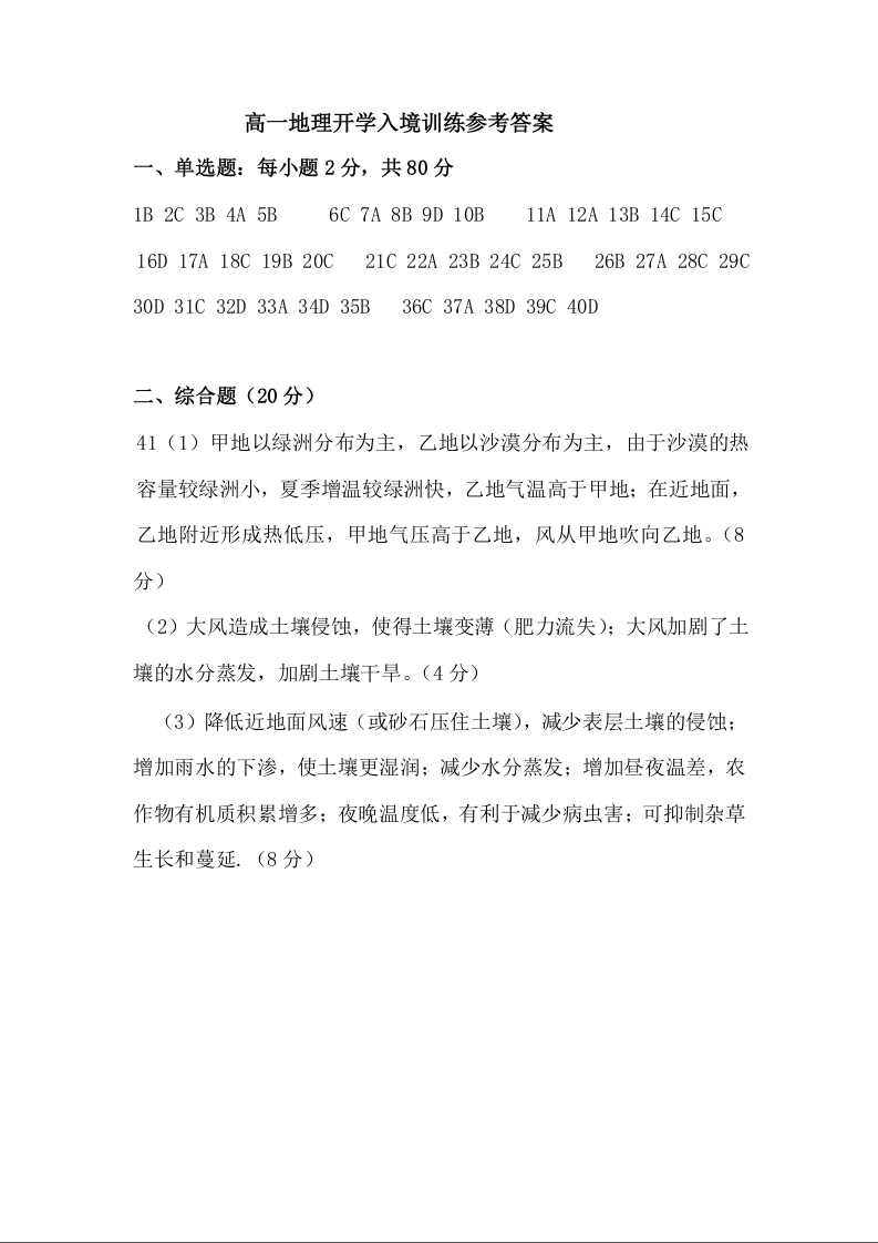 广东实验中学2024-2025学年高一下学期开学考试 地理答案.docx