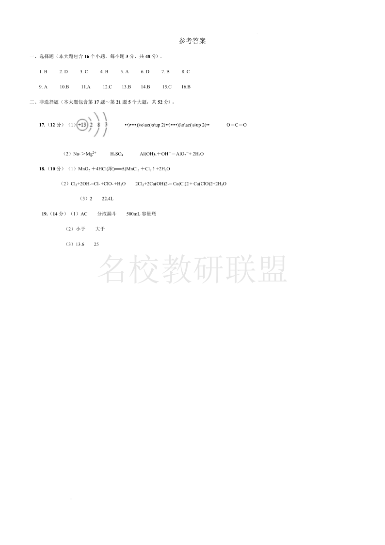 重庆复旦中学2024-2025学年高一下学期开学定时作业 化学答案.pdf