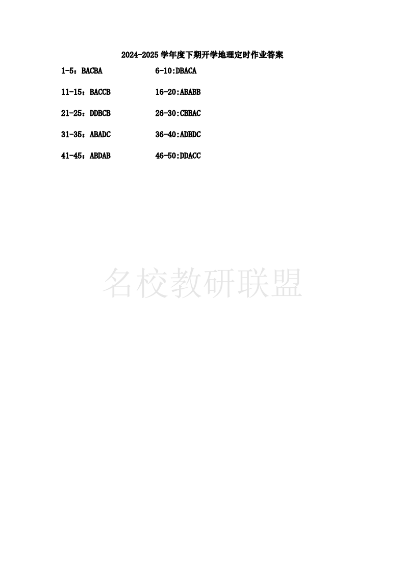 重庆复旦中学2024-2025学年高一下学期开学定时作业 地理答案.pdf