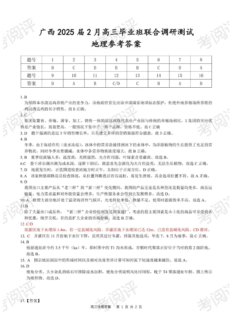 广西2025届2月高三毕业班联合调研测试 地理答案.pdf