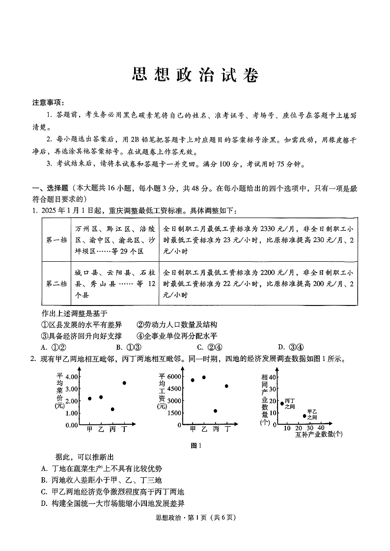重庆市第八中学2025届高考适应性月考卷(五)政治.pdf