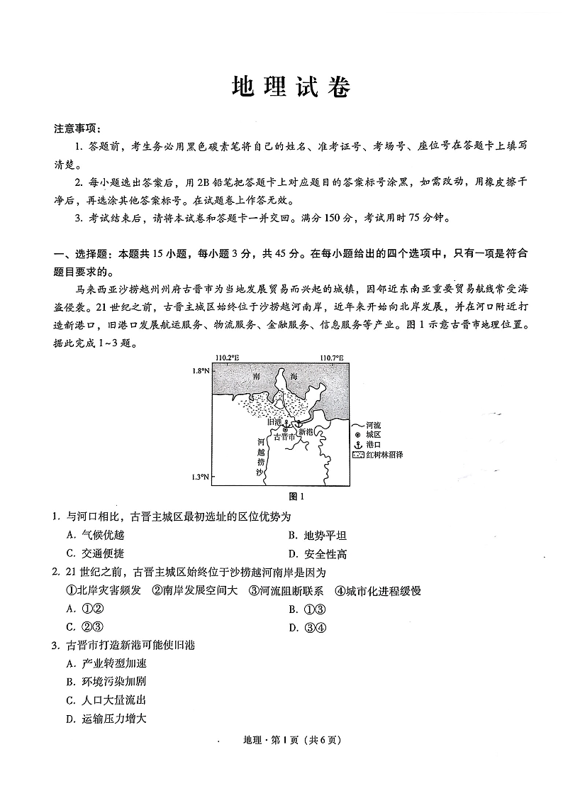 重庆市第八中学2025届高考适应性月考卷(五)地理.pdf