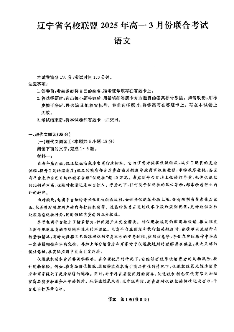 辽宁省名校联盟2025年高一3月份联合考试 语文.pdf