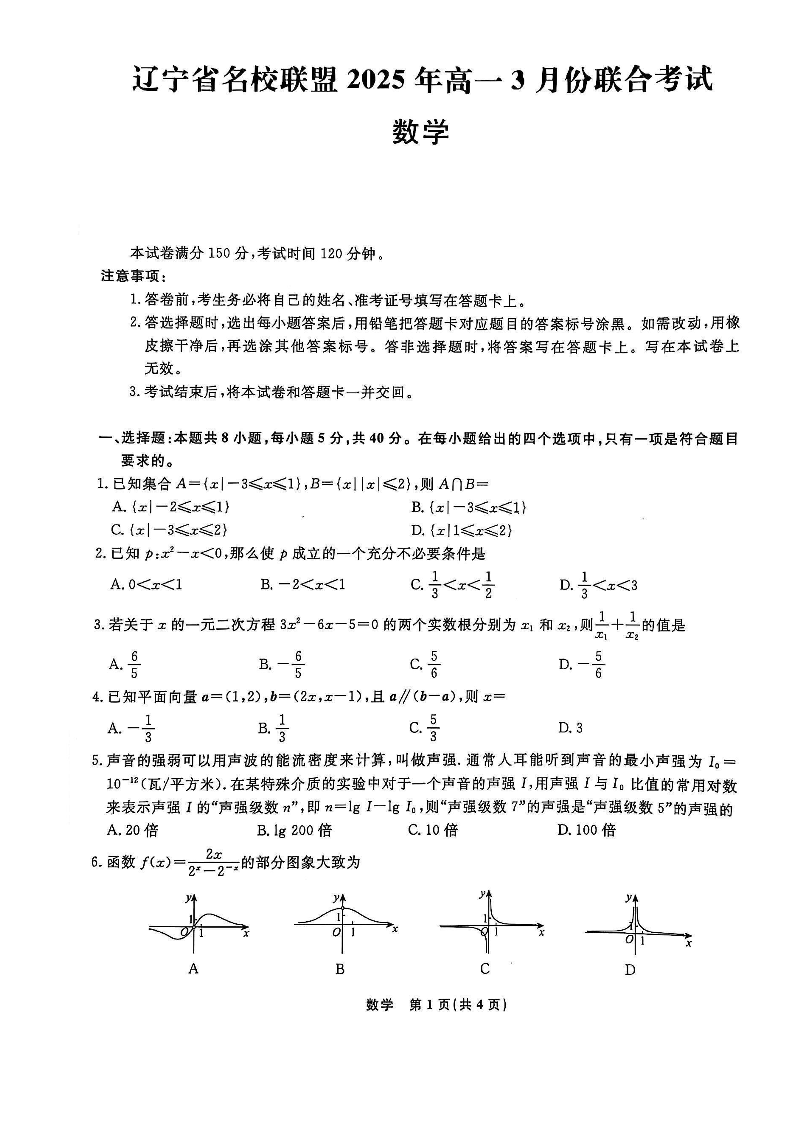 辽宁省名校联盟2025年高一3月份联合考试 数学.pdf