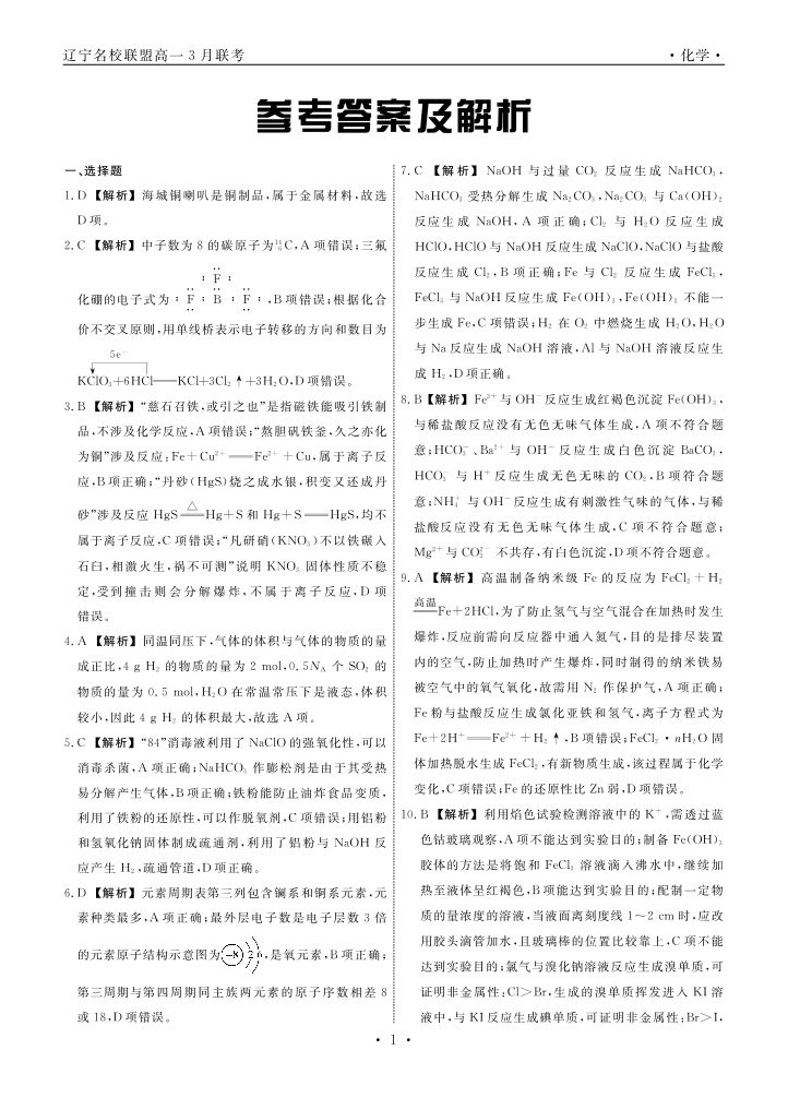 辽宁省名校联盟2025年高一3月份联合考试 化学答案.pdf