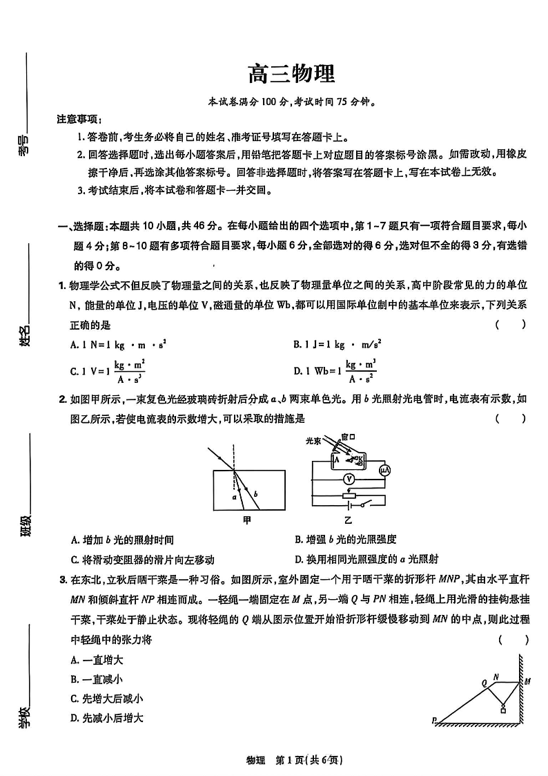 东北三省精准教学联盟2025届高三3月联考 物理(含答案).pdf