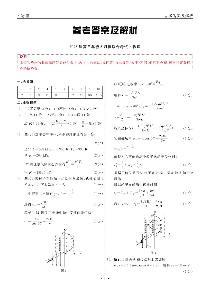 辽宁省点石联考2025届高三年级3月份联合考试 物理答案.pdf