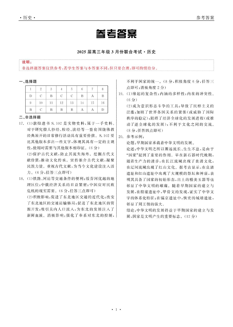 辽宁省点石联考2025届高三年级3月份联合考试 历史答案.pdf